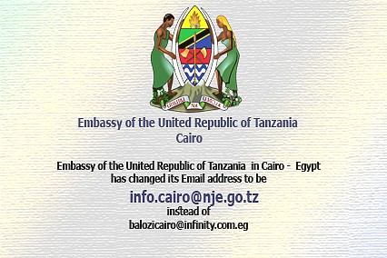 Dear colleagues,The Embassy of the United Republic of Tanzania  in Cairo -  Egypt has changed its Email address to be    info.cairo@nje.go.tzPlease don’t use the old one that is: …