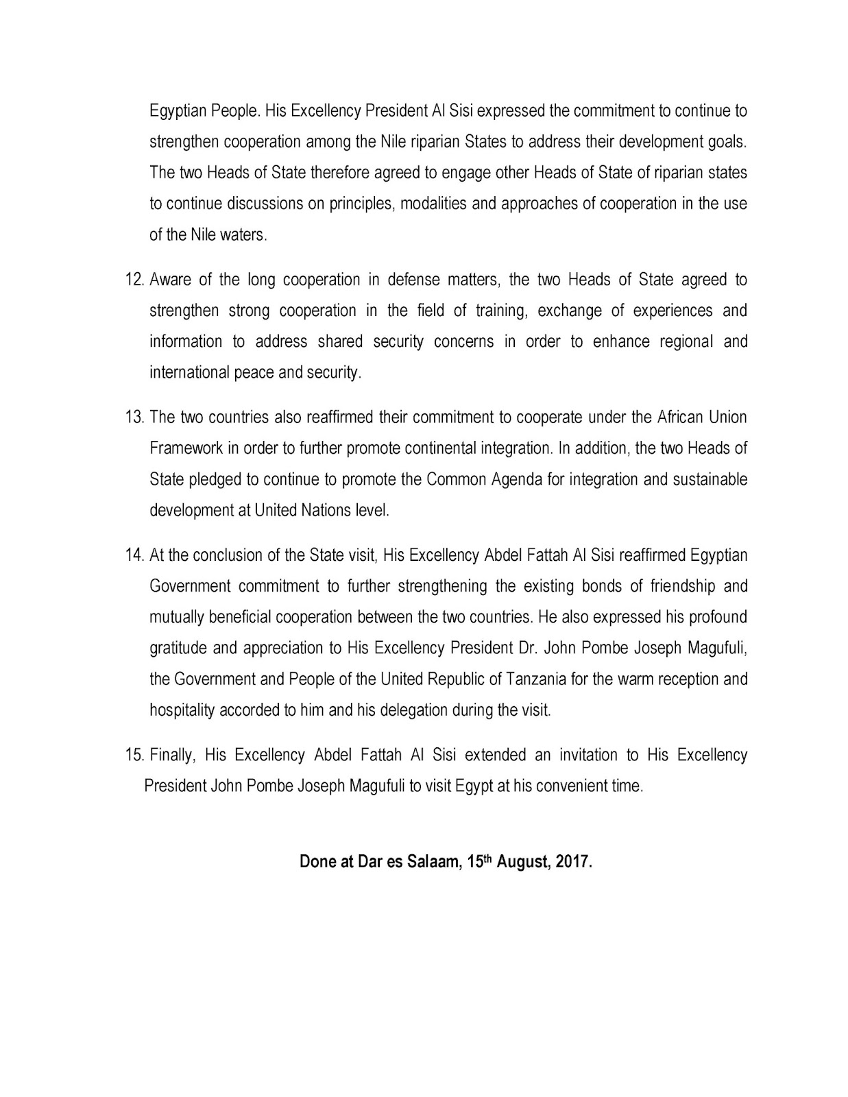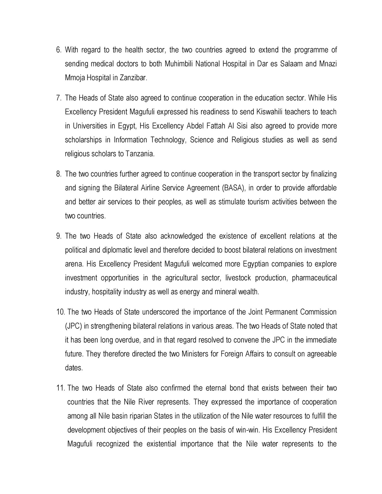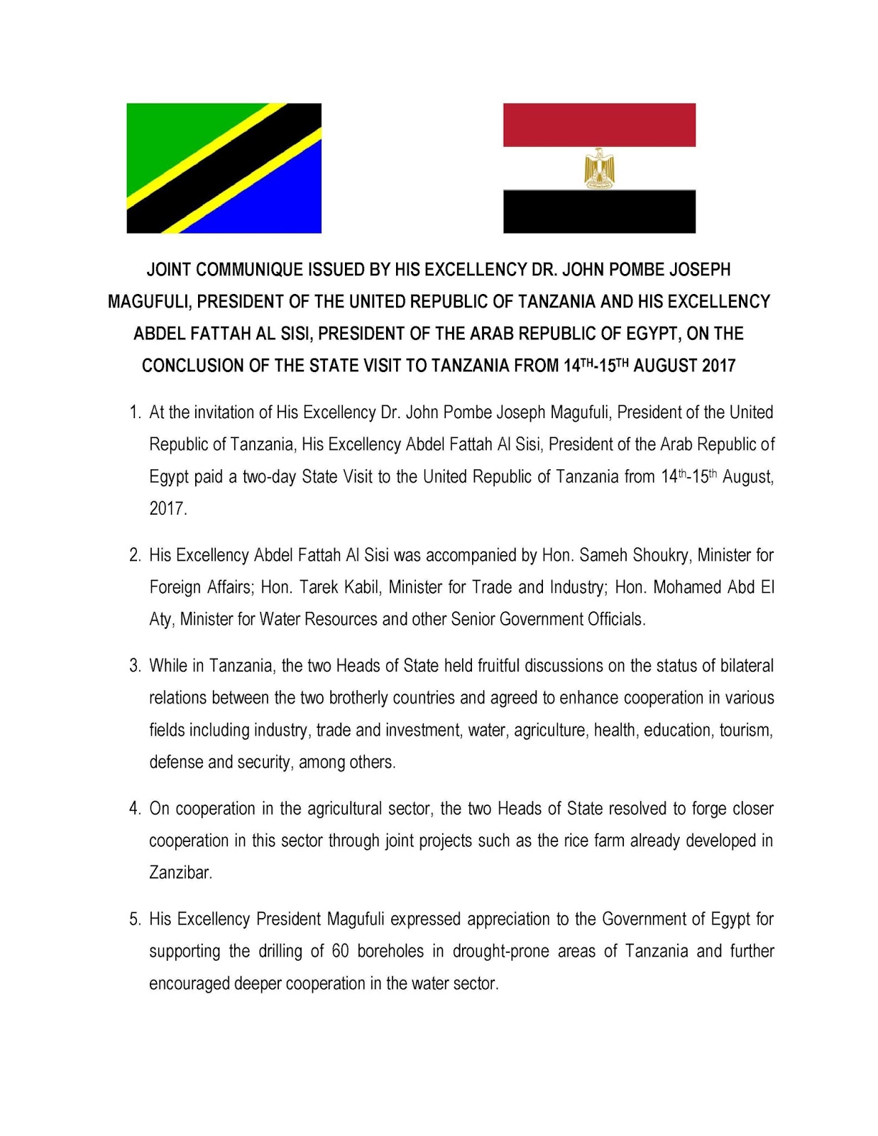 Egypt and Tanzania set bilateral cooperation on track
