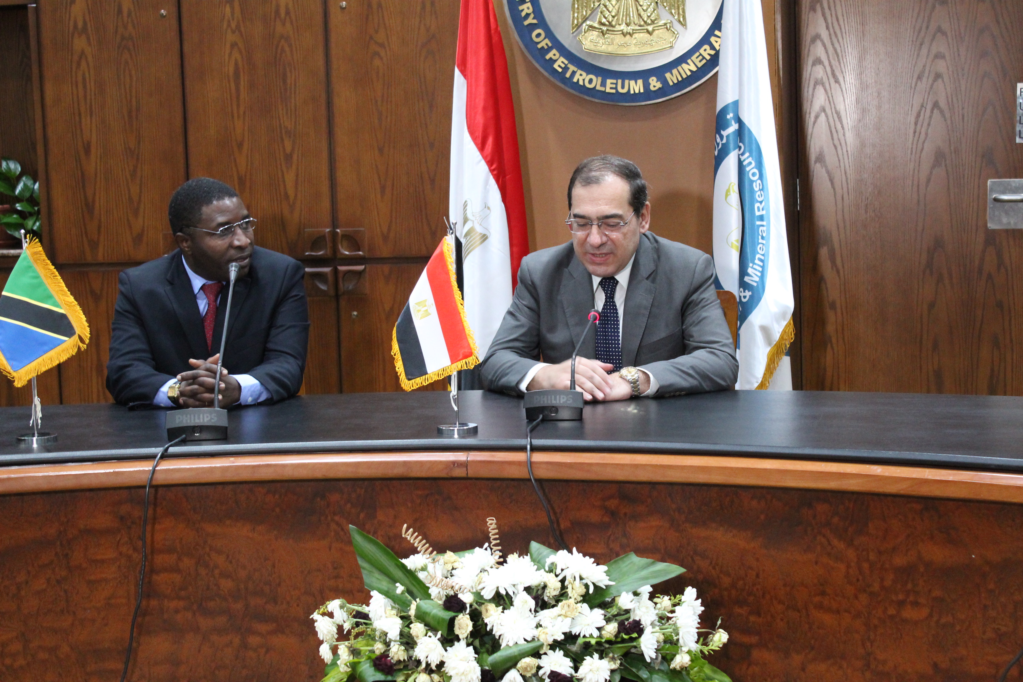 Mhe. Medard M. Kalemani (MB), Waziri wa Nishati wa Jamhuri ya Muungano wa Tanzania akifanya mazungumzo na Mhe. Mhandisi Tarek Al Molla, Waziri wa Petroli wa Jamhuri ya Kiarabu ya Misri tarehe 07 Oktoba, 2019 wakati Mhe. Waziri Kalemani alipofanya ziara ya kikazi nchini Misri.