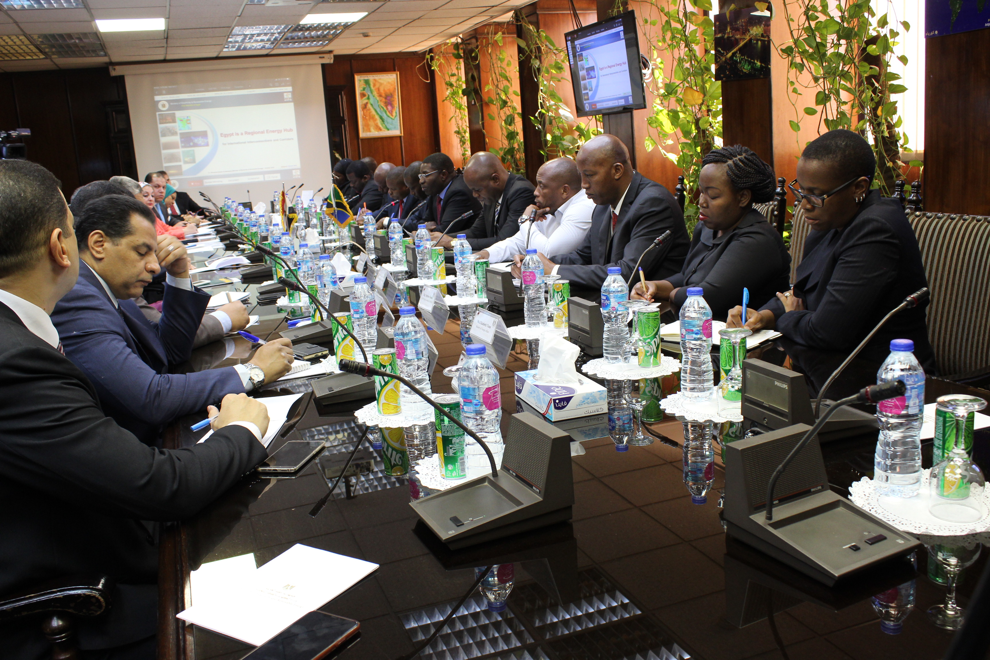 Mhe. Medard M. Kalemani (MB), Waziri wa Nishati wa Jamhuri ya Muungano wa Tanzania akizungumza na Mhe. Mohamed Shaker Waziri wa Umeme na Nishati Jadidifu wa Jamhuri ya Kiarabu ya Misri wakati wa ziara yake nchini Misri tarehe 07 Oktoba,2019.